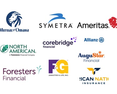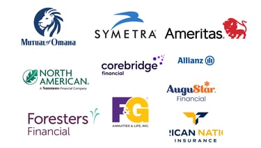 Allianz · Ameritas · ANICO · Augustar · Corebridge · F&G · Foresters · Mutual of Omaha · North American · Symetra